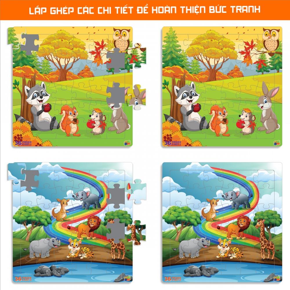 - Rất phù hợp làm quà tặng ý nghĩa và dễ thương cho bé Bộ sưu tập Set 02 Tranh Xếp Hình 36 Mảnh Để Bàn của Minh Châu gồm nhiều mẫu tranh đẹp, sắc nét, chủ đề phong phú và có kèm chân đế để bàn tiện dụng. Một giải pháp hiệu quả để hạn chế sự “mê mẩn” của các bé với smartphone, máy tính bảà tranh xếp hình (jigsaw puzzle), một trò chơi đậm tính giáo dục. Cha mẹ hãy tạo hứng thú cho bé bằng những bộ xếp hình có hình ảnh đẹp, phù hợp sở thích. Trò chơi xếp hình là một loại hình giải trí lành mạnh và tinh tế, rèn luyện trí óc và tính kiên nhẫn do sự kết hợp giữa tư duy lô-gic, óc quan sát và sự tập trung. Là món quà thú vị và ý nghĩa mà cha mẹ nên dành cho con trẻ, góp phần giáo dục qua quá trình “chơi mà học”.