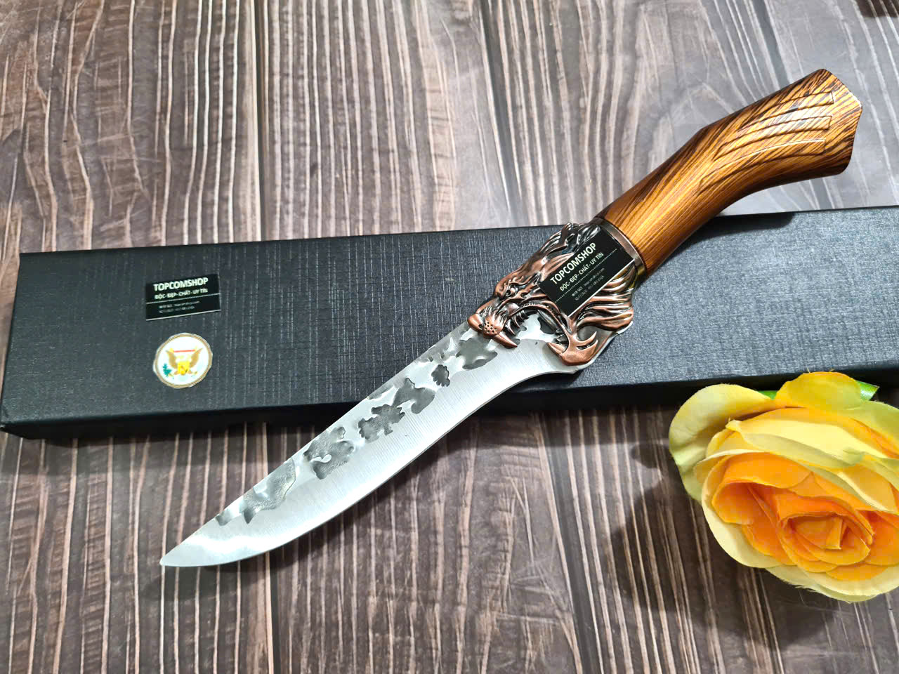 • Chất liệu: Thép Nhật 420J2, độ cứng 53HRC – siêu bền, chống gỉ • Lưỡi dao: Dày 2.5mm, sắc bén, hoàn thiện bằng đá mài nước • Tay cầm: Gỗ Pakka sang trọng, chống