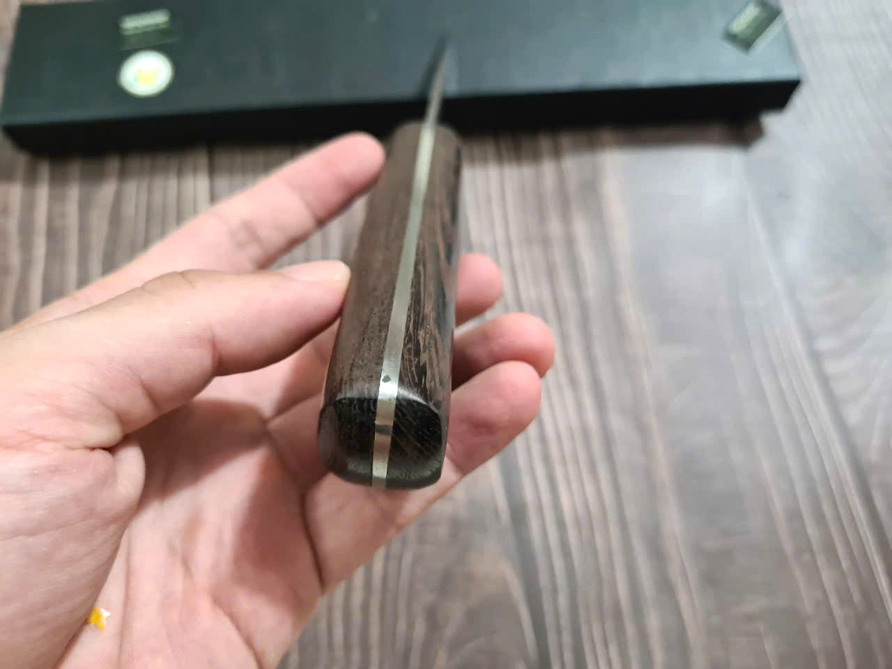 • Chất liệu: Thép Nhật 420J2, độ cứng 53HRC – siêu bền, chống gỉ • Lưỡi dao: Dày 2.5mm, sắc bén, hoàn thiện bằng đá mài nước • Tay cầm: Gỗ Pakka sang trọng, chống