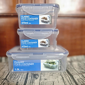 Bộ 3 Hộp Nhựa Classic Lock&Lock Hình Chữ Nhật Khóa 4 Cạnh Kín Hơi (1 Hộp 1L và 2 Hộp 470ml) được làm từ nhựa PP đã thông qua kiểm định theo tiêu chuẩn FDA