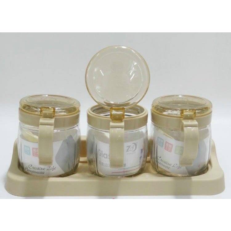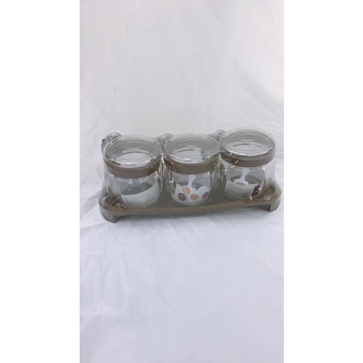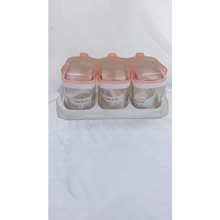 ✨Bộ 3 hũ đựng gia vị thủy tinh kèm khay ( giao màu ngẫu nhiên )