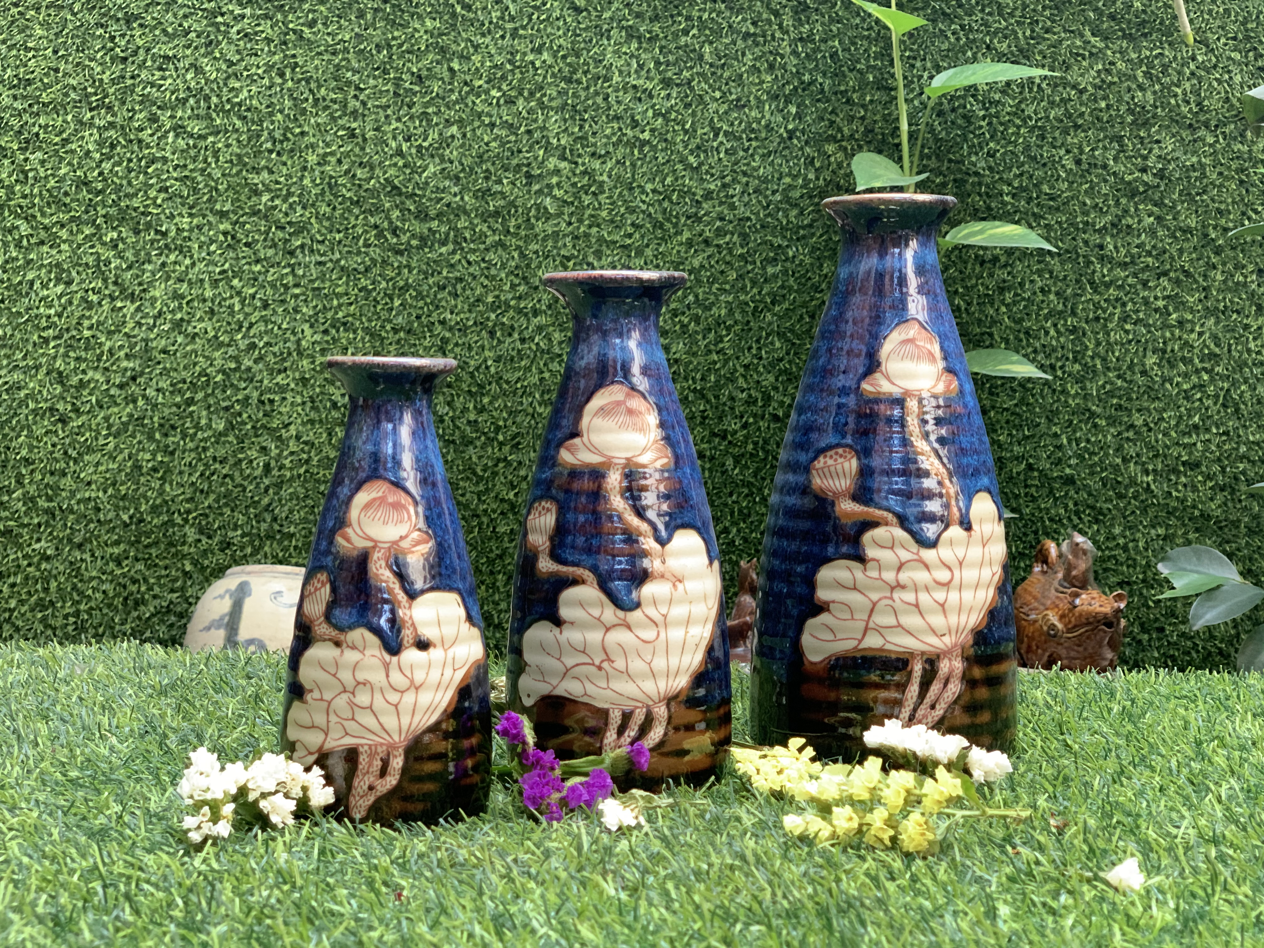 ✨ Bộ 3 lọ hoa men hỏa biến vẽ sen