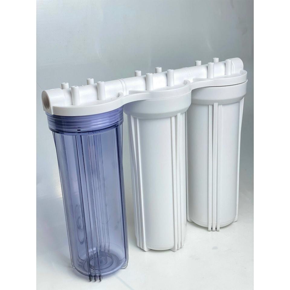 - 3 ly lọc nắp liền cáo cấp, với thiết kế 3 nắp liền nhau không cần xài co nối, giúp tránh sự cố rò rỉ nước giữa khác khớp nối so với các sản phẩm thông thường, giảm thiểu thời gian lắp đặt. 2 đầu IN-OUT ren trong phi 21 thông dụng.