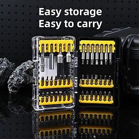 THÔNG TIN SẢN PHẨM Tổng số chi tiết: 39 món Chất liệu: Thép Cr-V cao cấp – chịu lực tốt, không gãy mẻ, chống mài mòn Đóng gói: Dán nhãn (label) – gọn, rõ ràng từng loại đầu vít CHI TIẾT BỘ SẢN PHẨM GỒM: 28 đầu vít loại ngắn 25mm PH1 x2 / PH2 x3 / PH3 x2 SL3, SL4, SL5, SL6 Lục giác (Hex): H3, H4, H5 x2, H6 Hoa thị (Torx): T10, T15, T20, T25, T27, T30 Vuông: S1, S2, S3 PZ (Pozidriv): PZ1, PZ2, PZ3 7 đầu vít dài 50mm PH2 x2 SL6 Lục giác H4, H5 Torx: T15, T20 2 đầu khẩu từ 42mm Size: 8mm & 10mm 1 đầu nối giữ mũi vít từ tính 60mm 1 đầu chuyển đổi đầu khẩu 1/4" x 65mm (impact socket adaptor)
