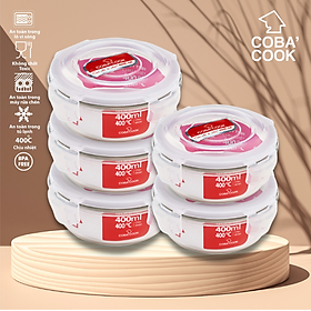 ✨Bộ 5 hộp thủy tinh hộp đựng cơm trữ thức ăn thực phẩm trong tủ lạnh chịu nhiệt COBA'COOK 400ml- CCR45