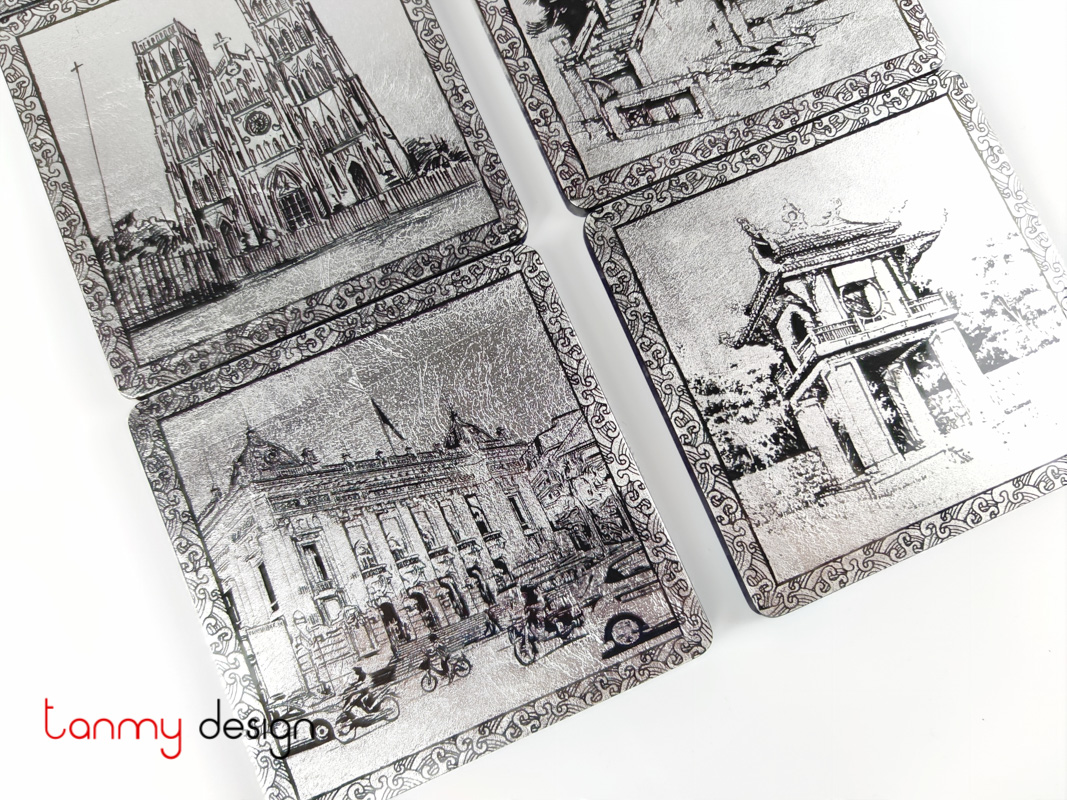 ✨BỘ 6 LÓT CỐC SƠN MÀI HÌNH PHỐ CỔ HÀ NỘI.