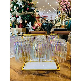 ✨Bộ 6 ly thủy tinh chịu nhiệt cao cấp dùng uống nước hoặc rượu tây vân sọc ánh trai