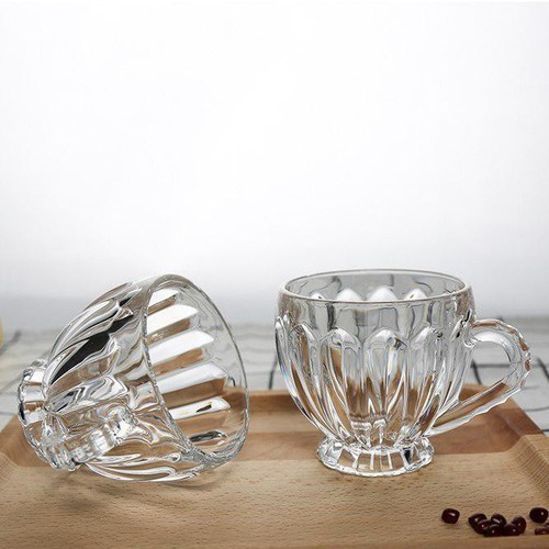 Bộ 6 Ly Thuỷ Tinh Có Quai Cầm Hoạ Tiết Hoa Nổi Dung Tích 200ML
