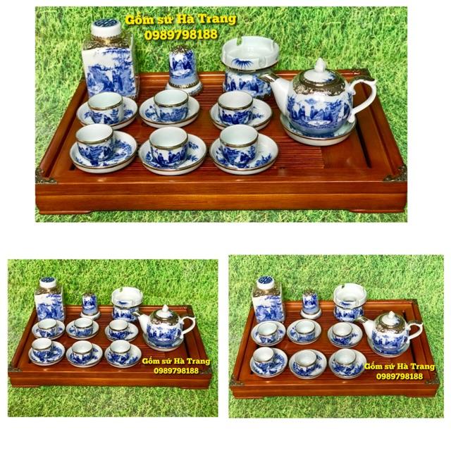 Bộ sản phẩm gồm : 1 ấm ,6 chén , 7 đĩa kê , 1 ống tăm, 1hộp chè , 1 gạt tàn , 1 khay gỗ
