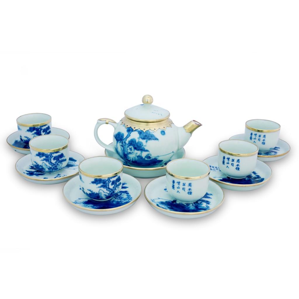 Mua tại TiktokBộ ấm chén men lam, lã vọng câu cá dáng chuông