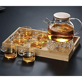 ✨Bộ ấm chén pha trà thuy tinh chịu nhiệt cao cấp nắp gỗ kèm khay tre và đế châm nến