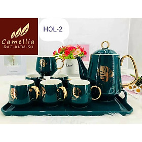 Mua tại TiktokBộ ấm chén xanh cổ vịt xứ phong cách châu Âu mạ vàng