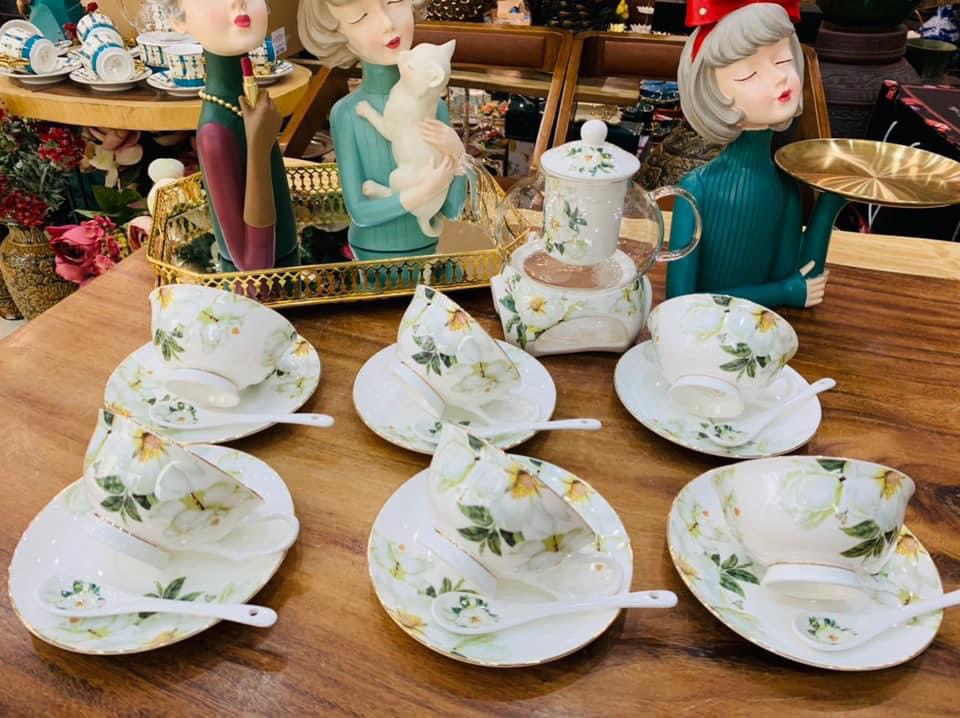 Bộ ấm chén chất liệu sứ xương cao cấp với thiết kế đẹp ,tiện dụng chất liệu cao cấp,dễ bảo quản ,vệ sinh.