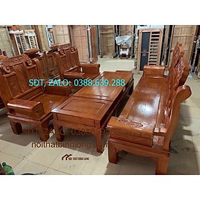 Bộ bàn ghế Sofa phòng khách gỗ sồi giá 19 triệu cả đệm và kính.