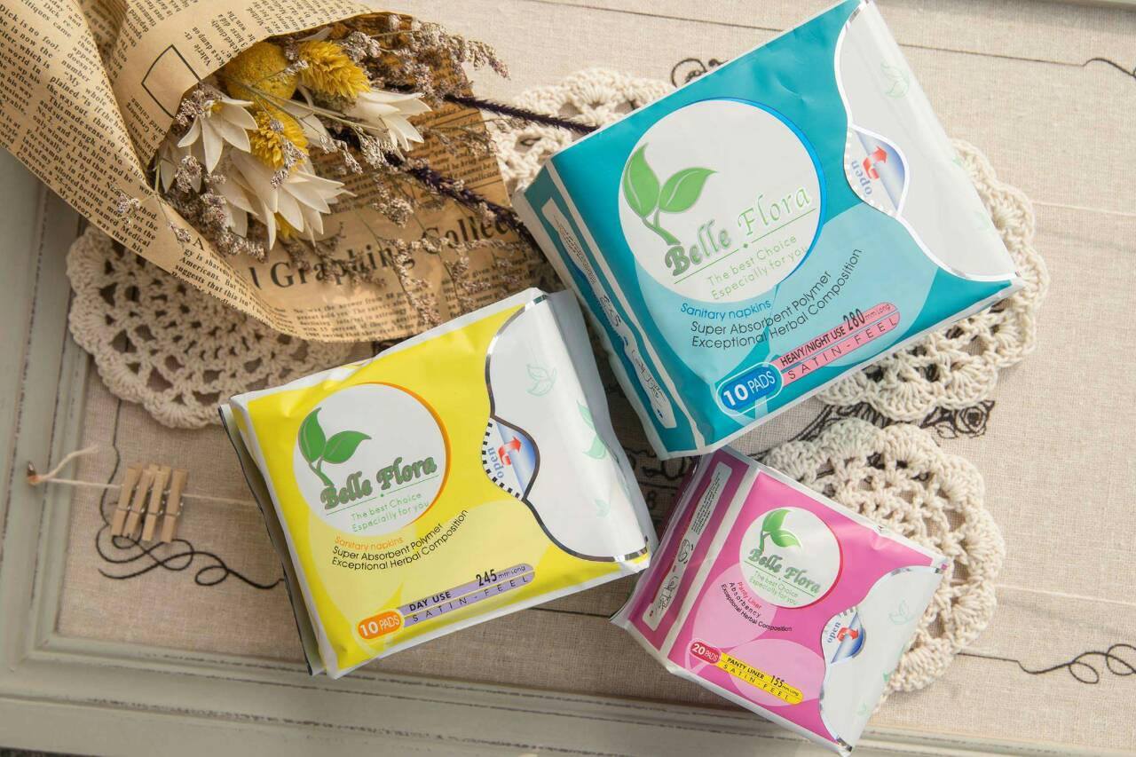 Băng vệ sinh hiệu Belle Flora với chiết xuất từ thảo dược thiên nhiên giúp điều hòa kinh nguyệt và giải tỏa được nỗi lo đau bụng vào những "ngày ấy”. Thiết kế đặc