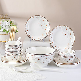 Bộ đồ ăn Bát Tràng - Sản phẩm bao gồm: 6 bát cơm, 1 mắm, 1 muối, 1 tô 16, 1 tô 18, 1 đĩa tròn 14, 1 đĩa tròn 16, 1 đĩa tròn 18,