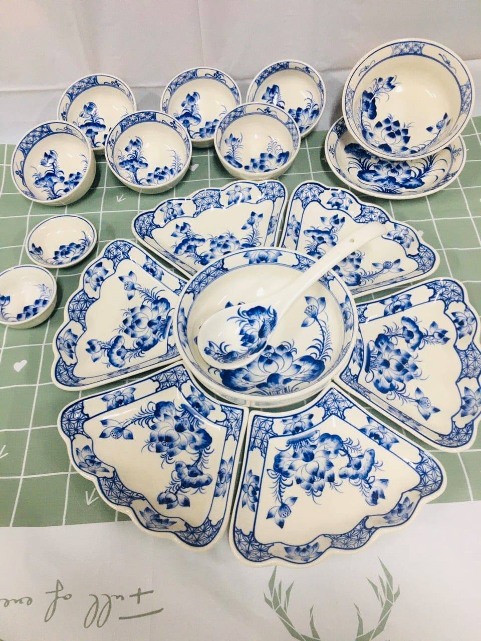 Bộ đồ ăn Bát Tràng - Sản phẩm bao gồm: 6 bát cơm, 1 mắm, 1 muối, 1 tô 16, 1 tô 18, 1 đĩa tròn 14, 1 đĩa tròn 16, 1 đĩa tròn 18,