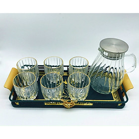 Bộ khay bình nước 6 cốc thuỷ tinh cao cấp