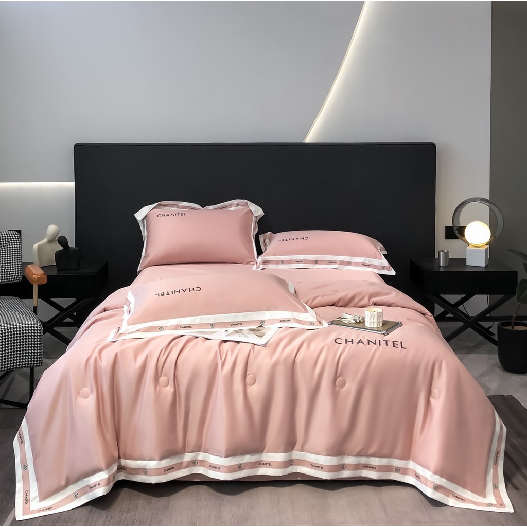 ✨Bộ chăn chần ga gối phi lụa chanitel ( gồm 1 chăn chần 1 ga 2 vỏ gối đầu ) đủ các kích thước