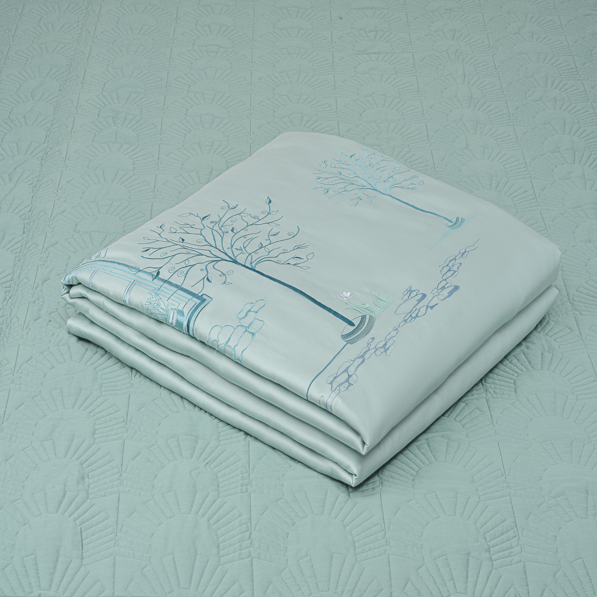 Chất liệu: Tencel Xuất xứ : Việt Nam Mô tả: Thiết kế hòa mình vào thiên nhiên đang là xu hướng của cuộc sống hiện đạị. Việc đem cây cối hoa lá vào trong phòng