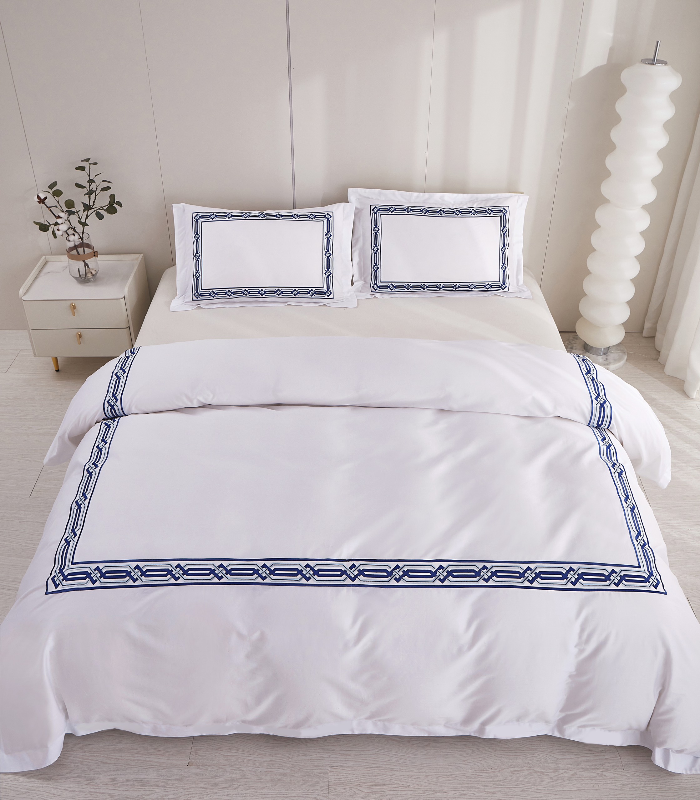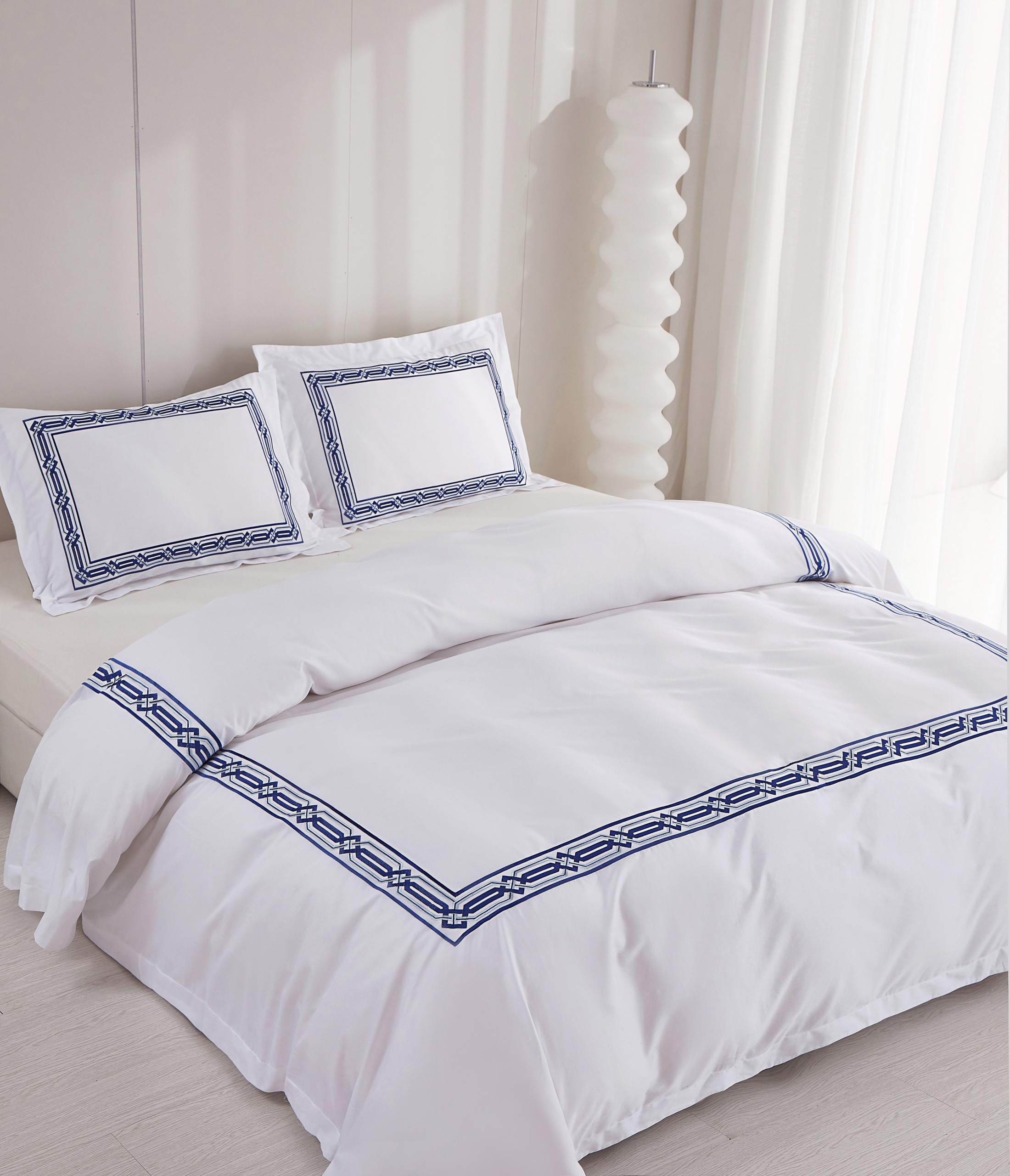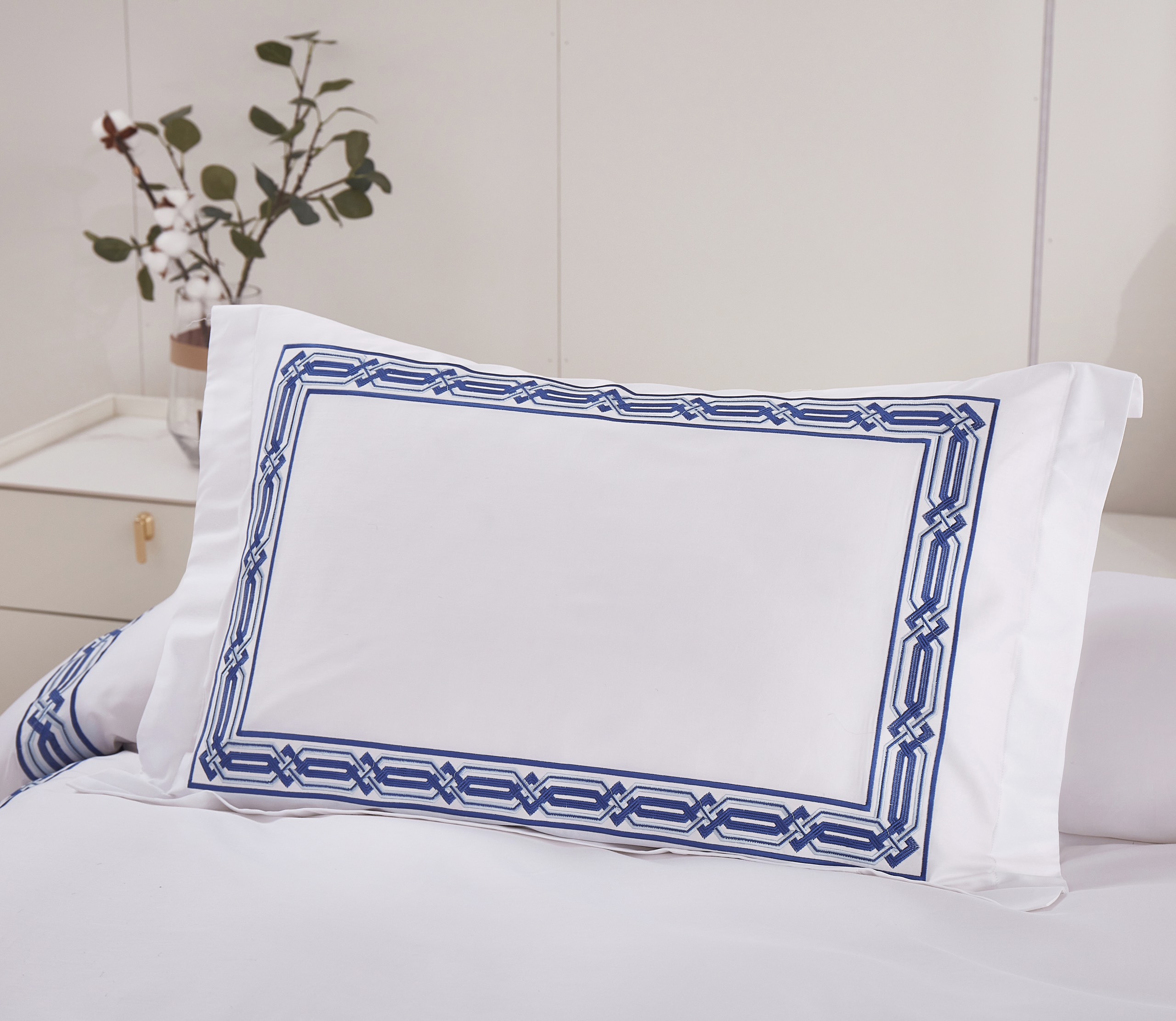 ✨Bộ chăn ra Casa Bello Home - Set Serenity Blue Cotton lụa satin thêu họa tiết thêu 5 món