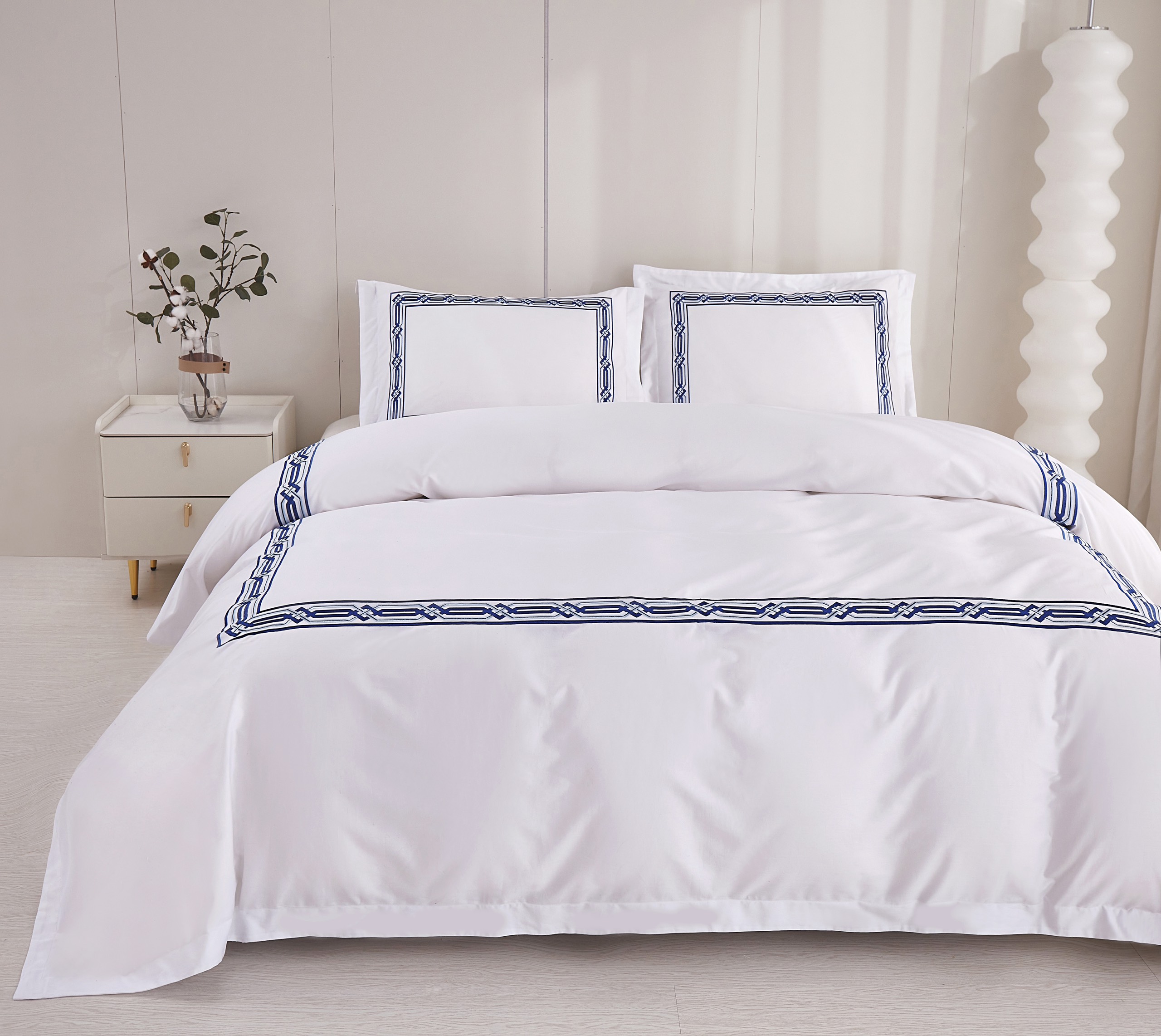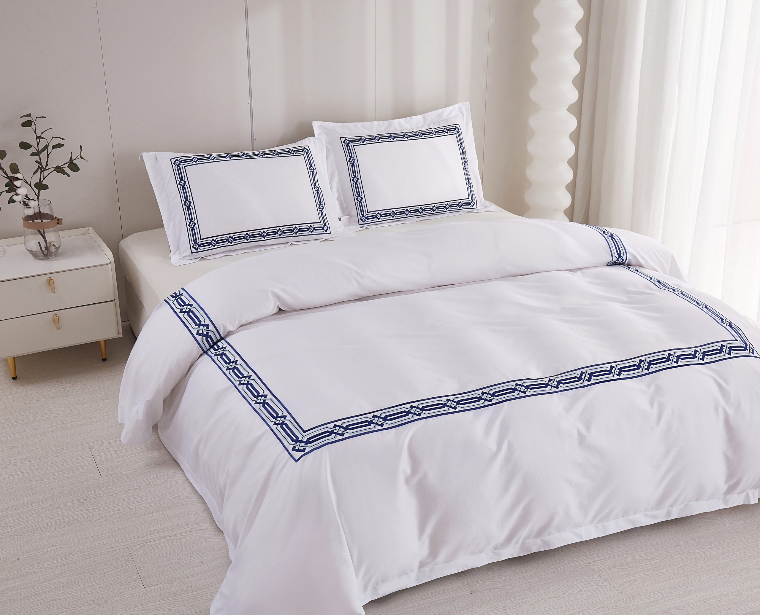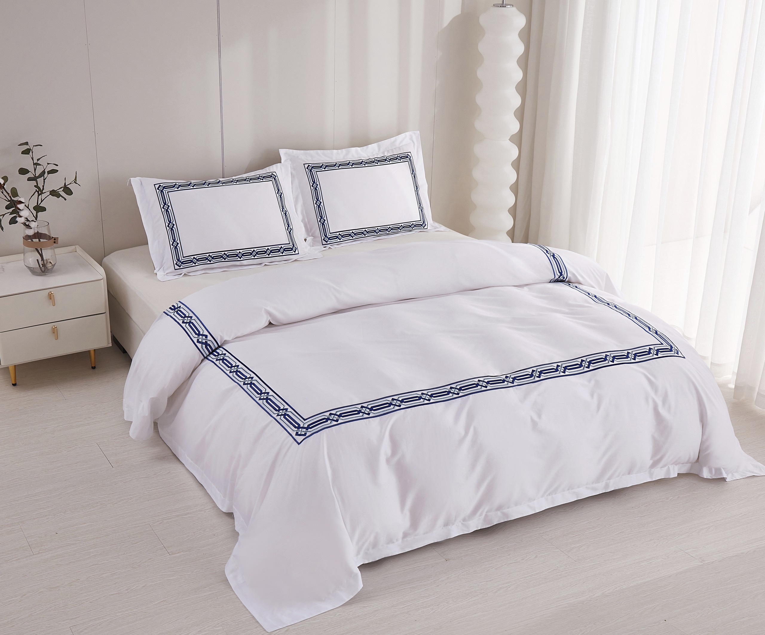 ✨Bộ chăn ra Casa Bello Home - Set Serenity Blue Cotton lụa satin thêu họa tiết thêu 5 món