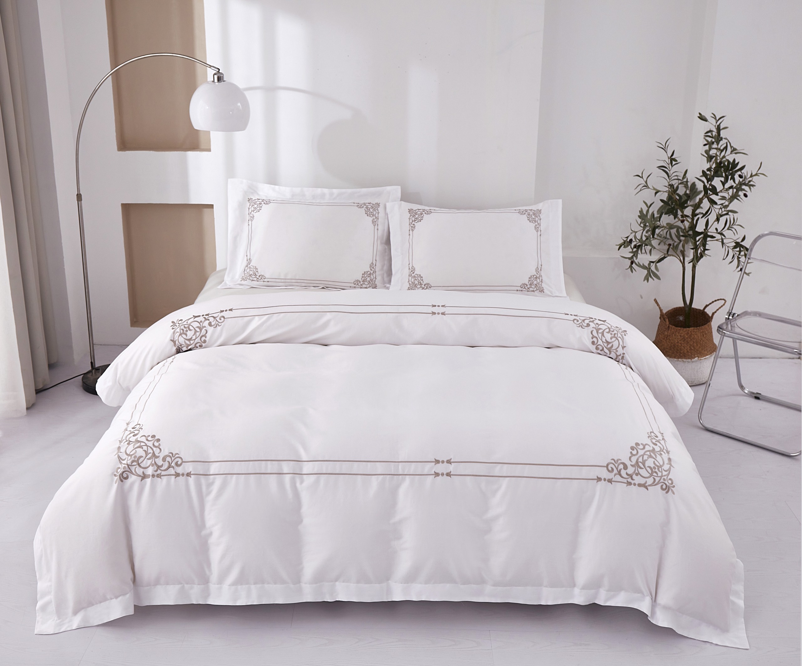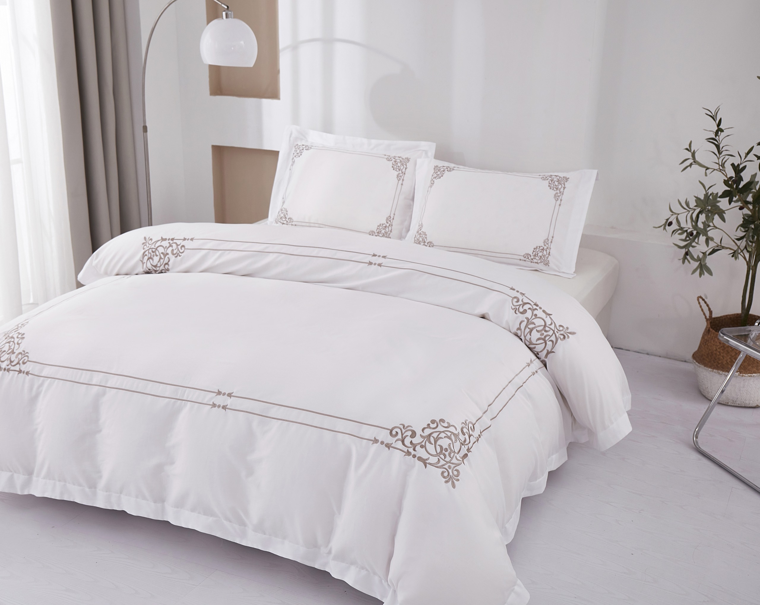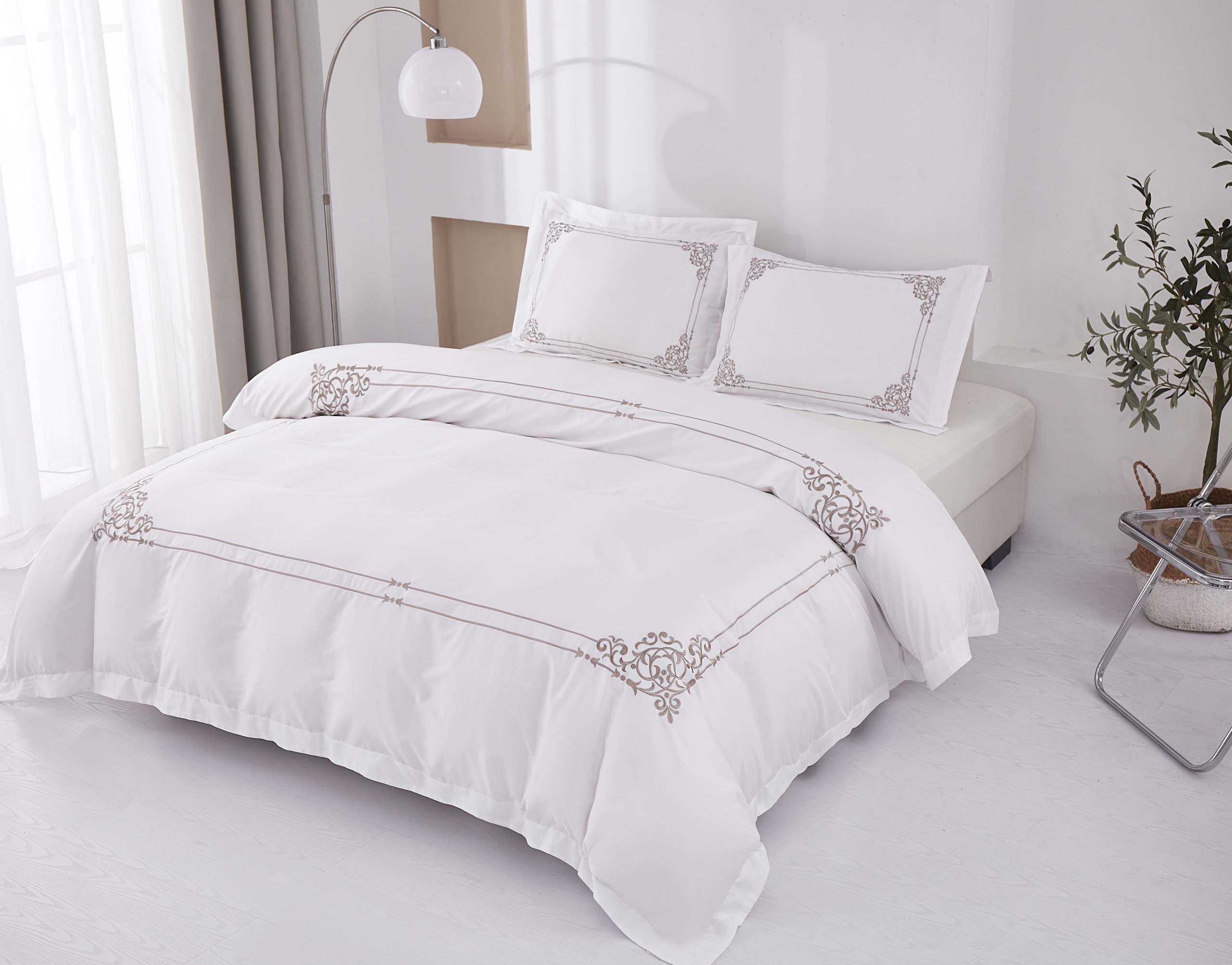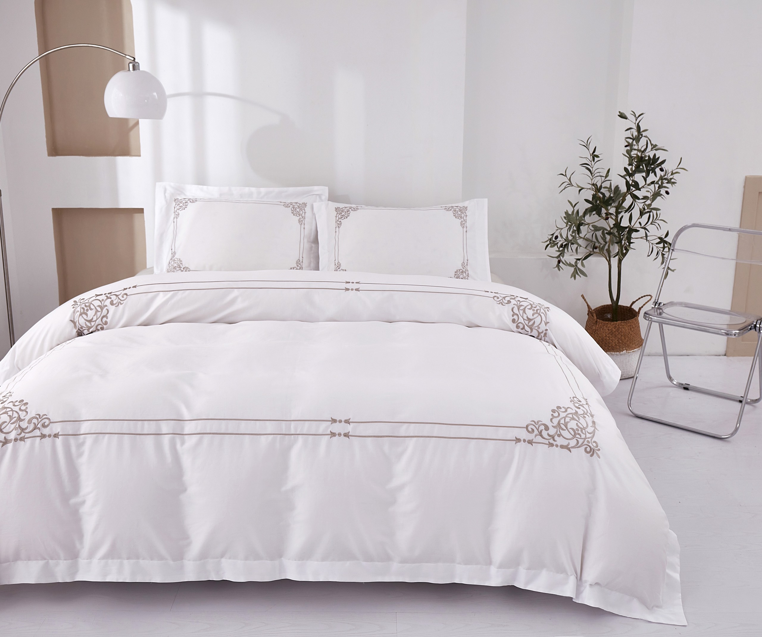 ✨Bộ chăn ra Casa Bello Home -Set Victoria Sand Bộ chăn ga gối Cotton satin thêu họa tiết thêu 5 món