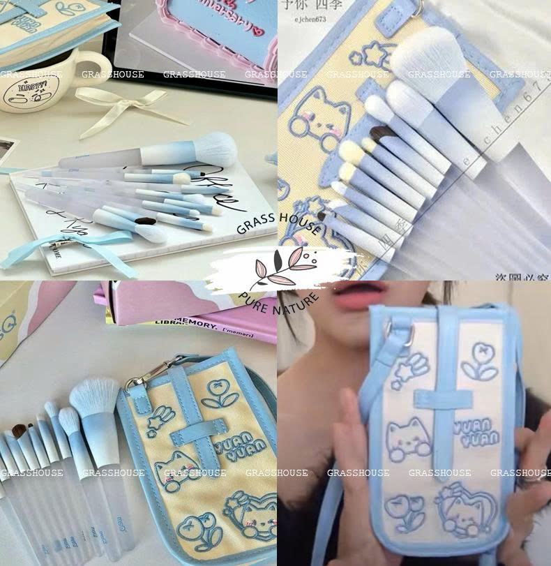 ✨BỘ CỌ TRANG ĐIỂM XANH HÌNH GẤU NGỌT NGÀO 10 CÂY/BỘ CÓ TÚI QUAI ĐEO ĐI KÈM