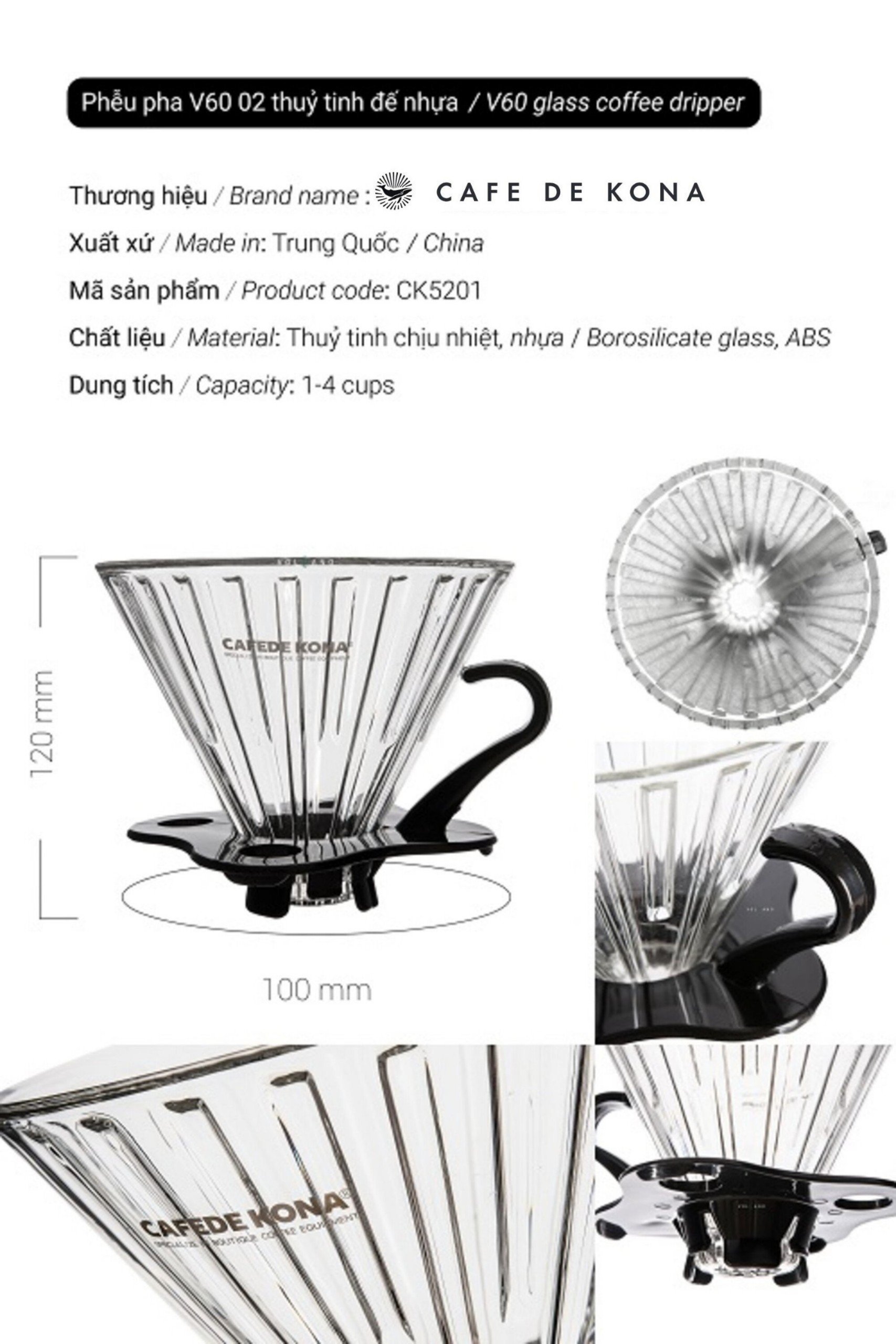 Thương hiệu: Cafede Kona Xuất xứ: Trung Quốc Kiểu dáng: V60