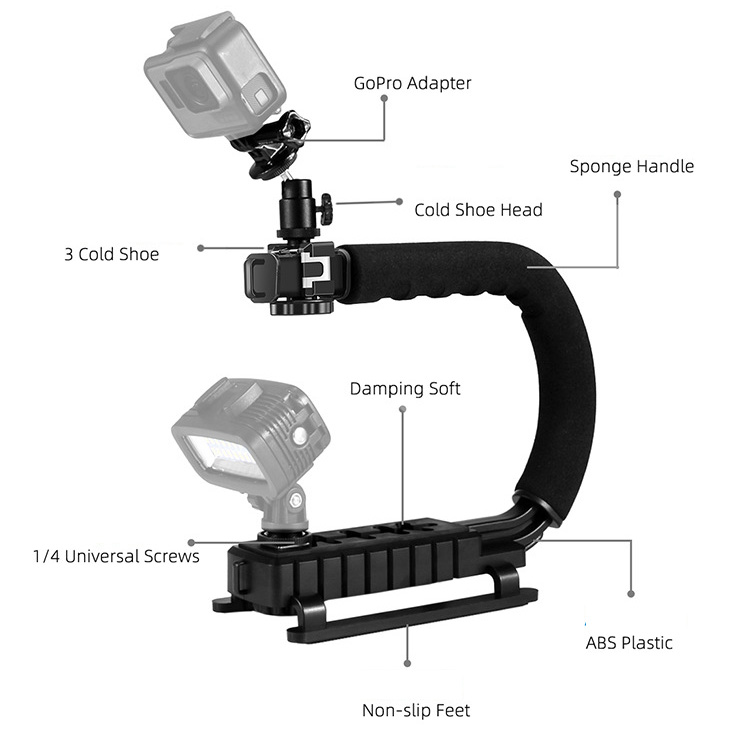- Tay cầm chống rung Puluz 3011 thiết kế hình chữ U/C dễ dàng điều chỉnh góc quay và độ cao của thiết bị; - Giúp hình ảnh chuyển động mượt mà, sắc nét và tăng cường