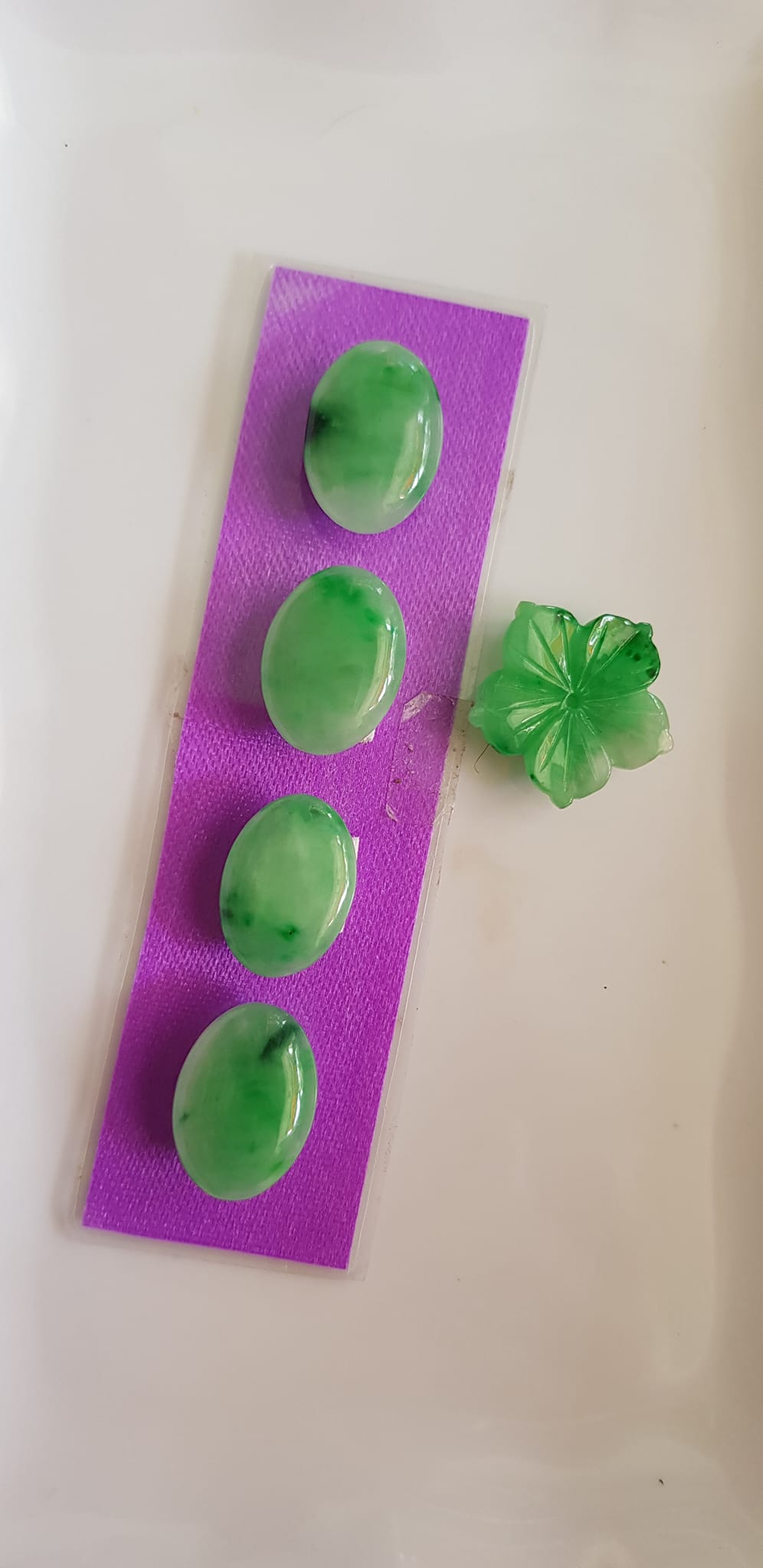 BỘ MẶT YÊN NGỰA GỒM 4 VIÊN ĐÁ CẨM THẠCH XANH LÁ TƯƠI Size Dài 19mm x Ngang 8mm x Dầy 3mm NỮ LÊN LẮC TAY ĐEO ĐẸP Ạ Sản phẩm này là tài sản
