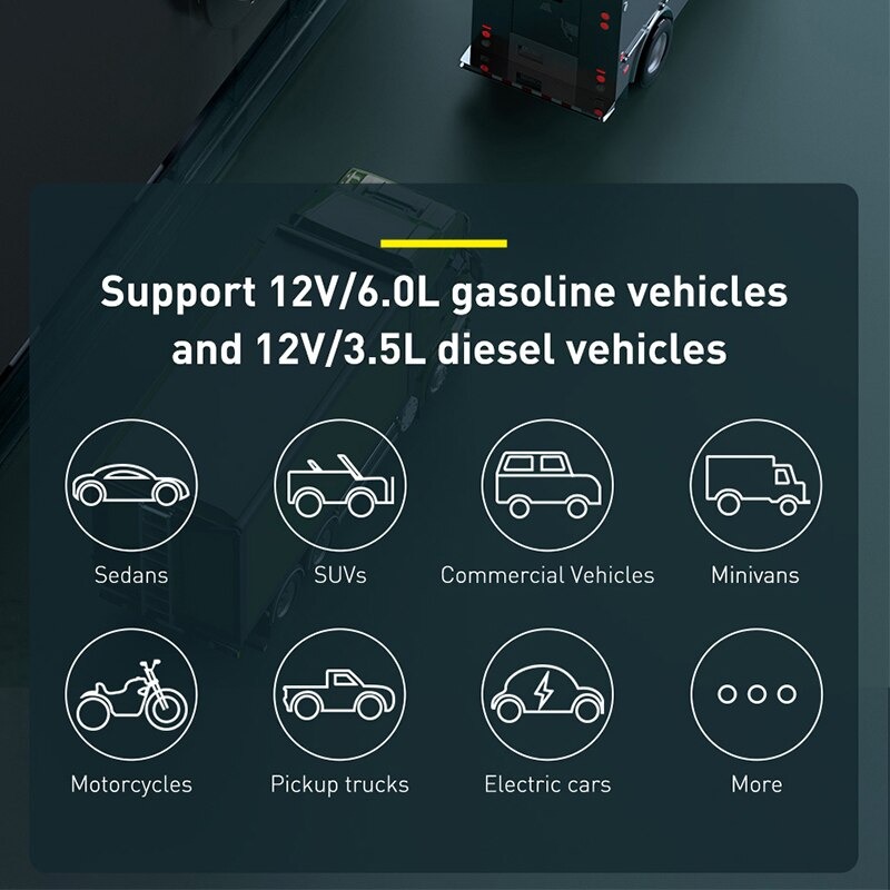 ✨ Bộ cứu hộ oto Baseus dung lượng 12000mAh công suất 1000A kiêm pin sạc dự phòng tích hợp màn hình kỹ thuật số [Hàng Chính Hãng]