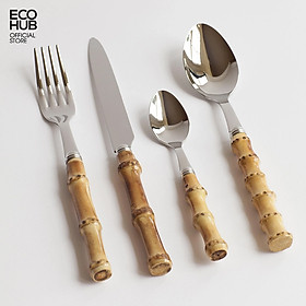 ✨Bộ Dao, Nĩa, Muỗng ECOHUB, cán Tre, màu bạc sang trọng, Sử dụng cho nhà hàng cao cấp / cá nhân
