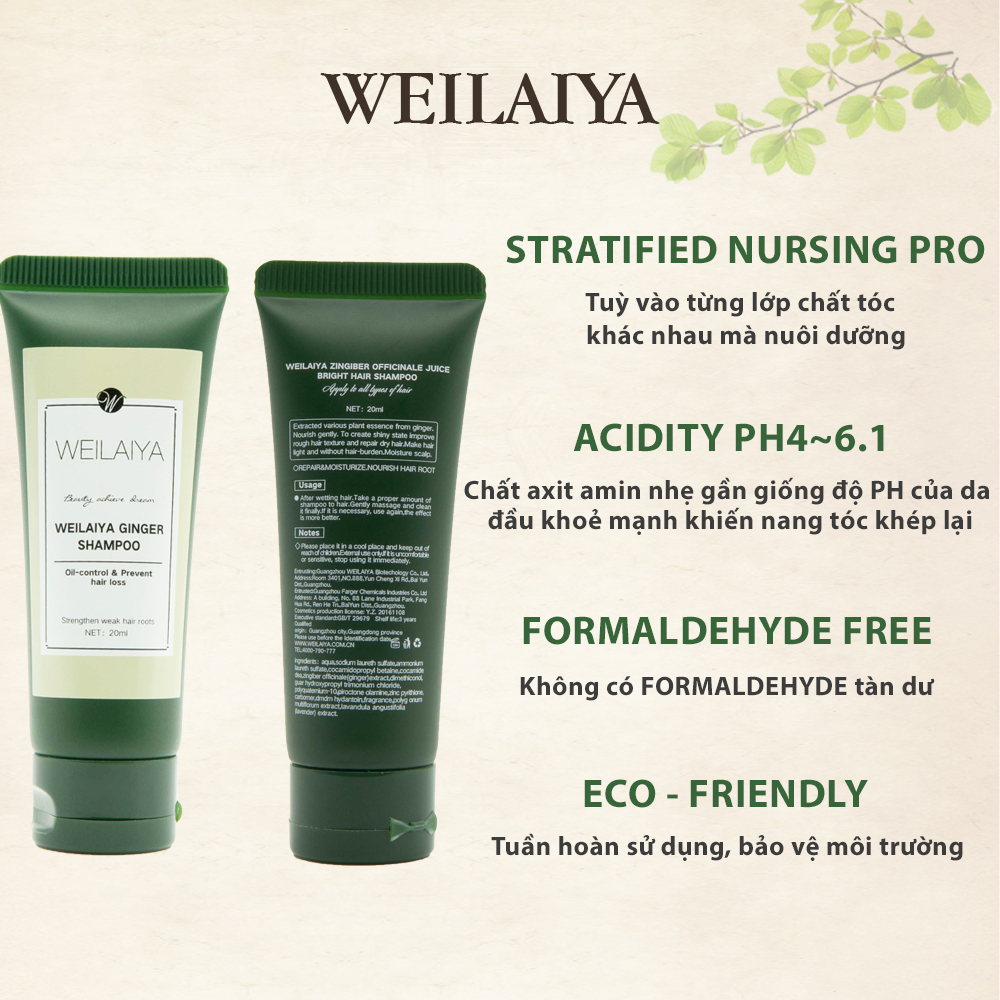 WEILAIYA có hiệu quả trong việc làm sạch gầu và dầu, giữ cân bằng lượng nước trong tóc, kết hợp với vitamin E có công hiệu chắc khỏe ngọn tóc, cân bằng lượng dầu sinh thái, giúp tóc đen và dày hơn.