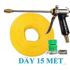✨Bộ dây vòi xịt nước rửa xe, tưới cây . tăng áp 3 lần, loại 15m 206236 đầu đồng,đai,nối vàng+ tặng mở chai