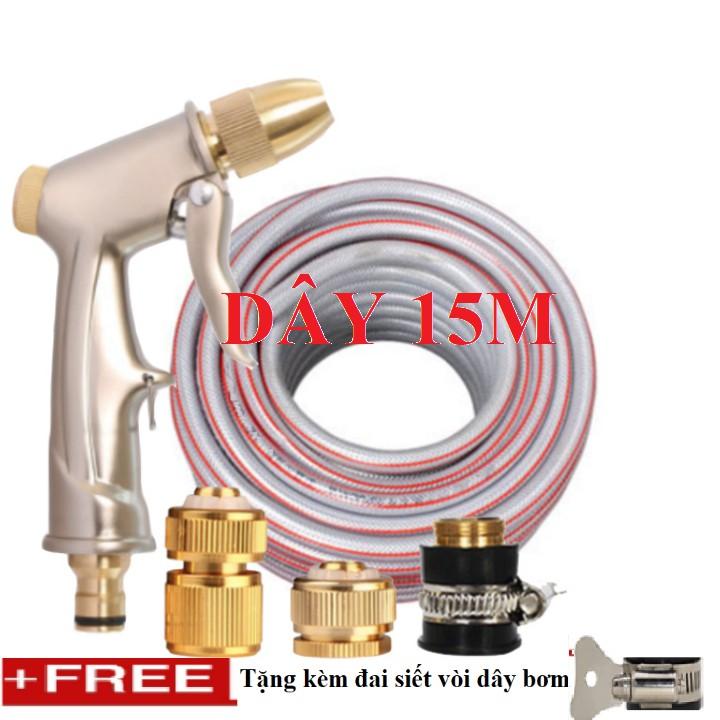 ✨Bộ dây vòi xịt nước rửa xe, tưới cây . tăng áp 3 lần, loại 15m 206701-1 đầu đồng,cút đồng+ tặng đai