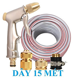 ✨Bộ dây vòi xịt nước rửa xe, tưới cây . tăng áp 3 lần, loại 15m 206701-2 đầu đồng, cút đồng+ tặng mở chai