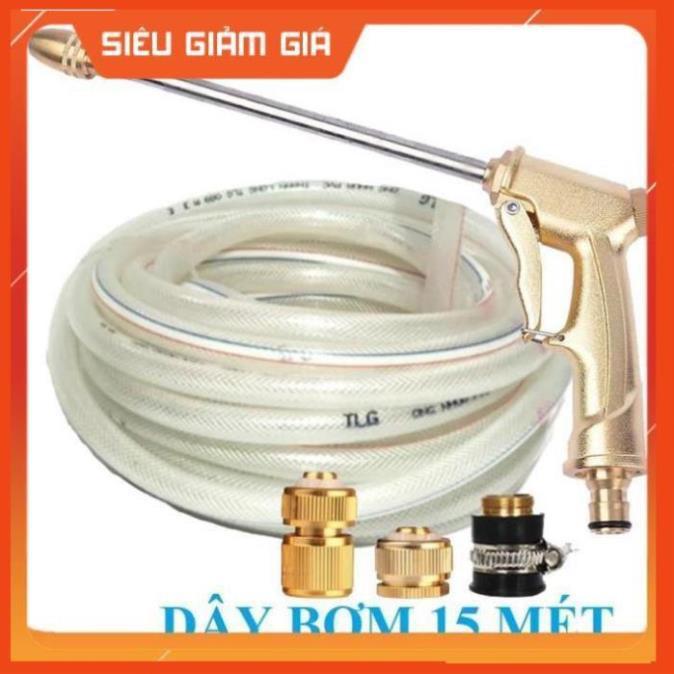 ✨Bộ dây vòi xịt nước rửa xe, tưới cây . tăng áp 3 lần, loại 15m 206701-3 đầu đồng, cút đồng