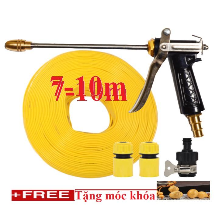 ✨Bộ dây vòi xịt nước rửa xe, tưới cây . tăng áp 3 lần, loại 7m, 10m 206318 đầu đồng,cút,nối đen + tặng móc khoá