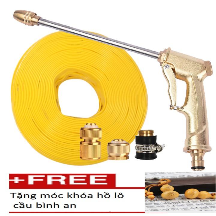 ✨Bộ dây vòi xịt nước rửa xe, tưới cây . tăng áp 3 lần, loại 7m, 10m 206701-3 đầu đồng,cút đồng+tặng móc khoá