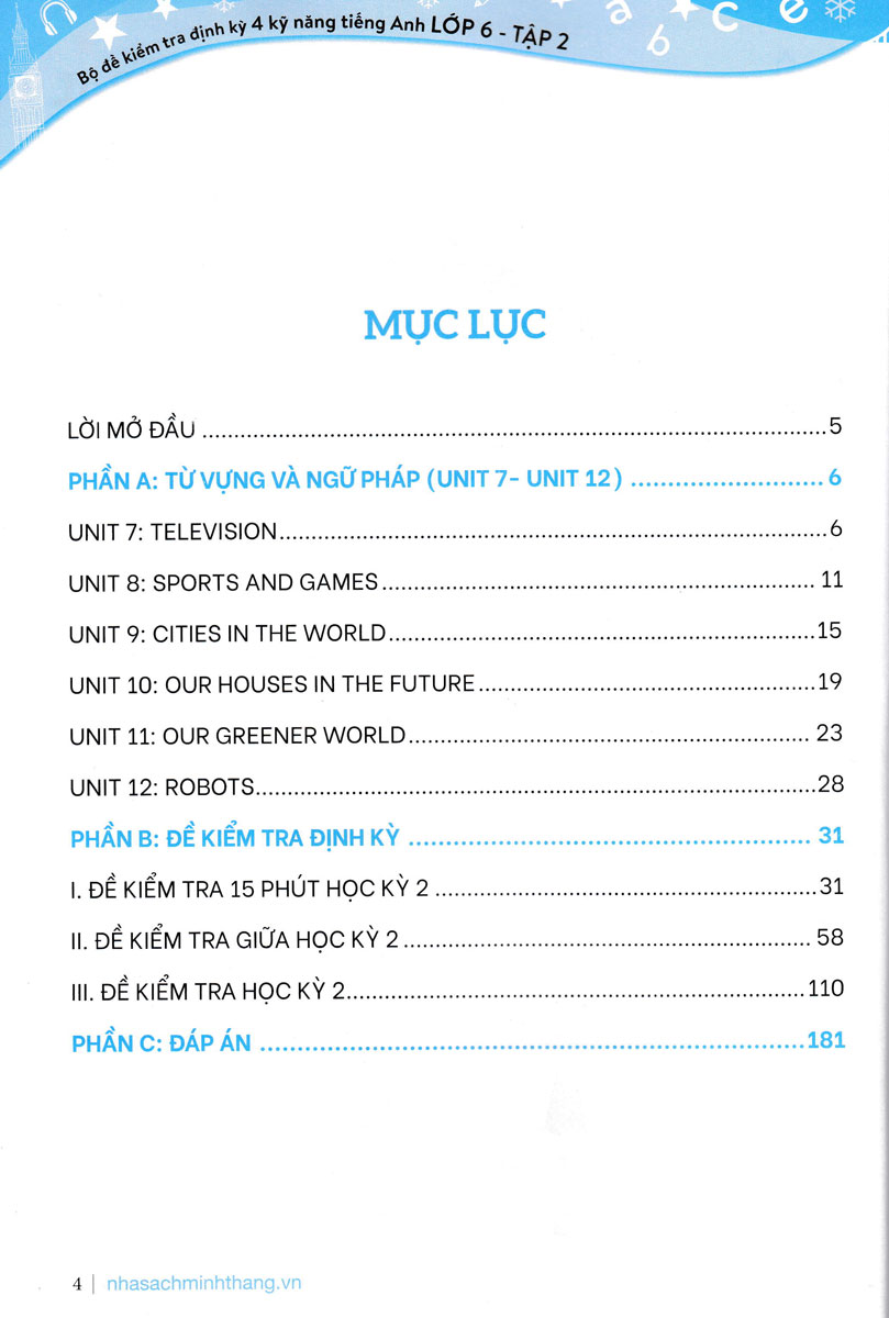 Mua tại TiktokBộ Đề Kiểm Tra Định Kỳ 4 Kỹ Năng Tiếng Anh Lớp 6 Tập 2 (Có Đáp Án)
