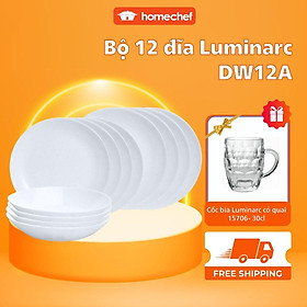 Bộ 12 đĩa Luminarc Diwali với màu trắng tinh khiết, thiết kế theo phong cách truyền thống với kiểu dáng tròn và trơn nhưng không kém sang trọng và tinh tế. Với dòng sản phẩm này, phòng ăn nhà bạn sẽ trở nên trang nhã mà không kém phần tươi mới.