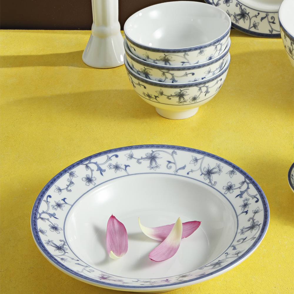 Bộ bát đĩa sứ hoa màu xanh đậm Bộ đồ ăn 8 thứ