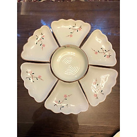 Set đĩa hoa mặt trời gốm sứ Bát Tràng cao cấp men trắng sang chảnh 1 set gồm : 1 bát tô , 6 đĩa cánh hoa , 6 bát cơm, 1 bát mắm ,