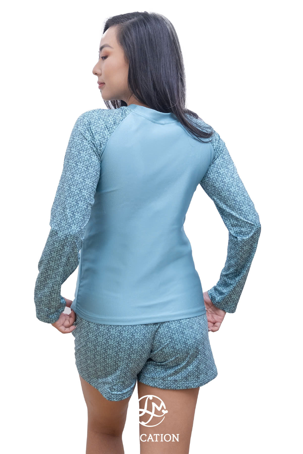 ✨Bộ đồ bơi nữ tay dài LMcation Quinn- Xanh ngọc thổ cẩm