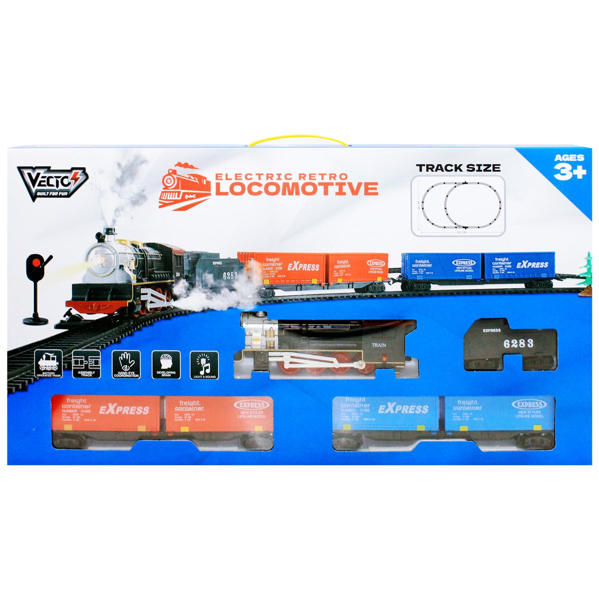 Bộ Đồ Chơi Lắp Ráp Đường Ray Và Tàu Lửa Retro Chạy Pin - Vecto VT22832 Bộ đồ chơi lắp ráp đường ray và tàu lửa Retro từ VECTO - Món đồ chơi lắp ráp
