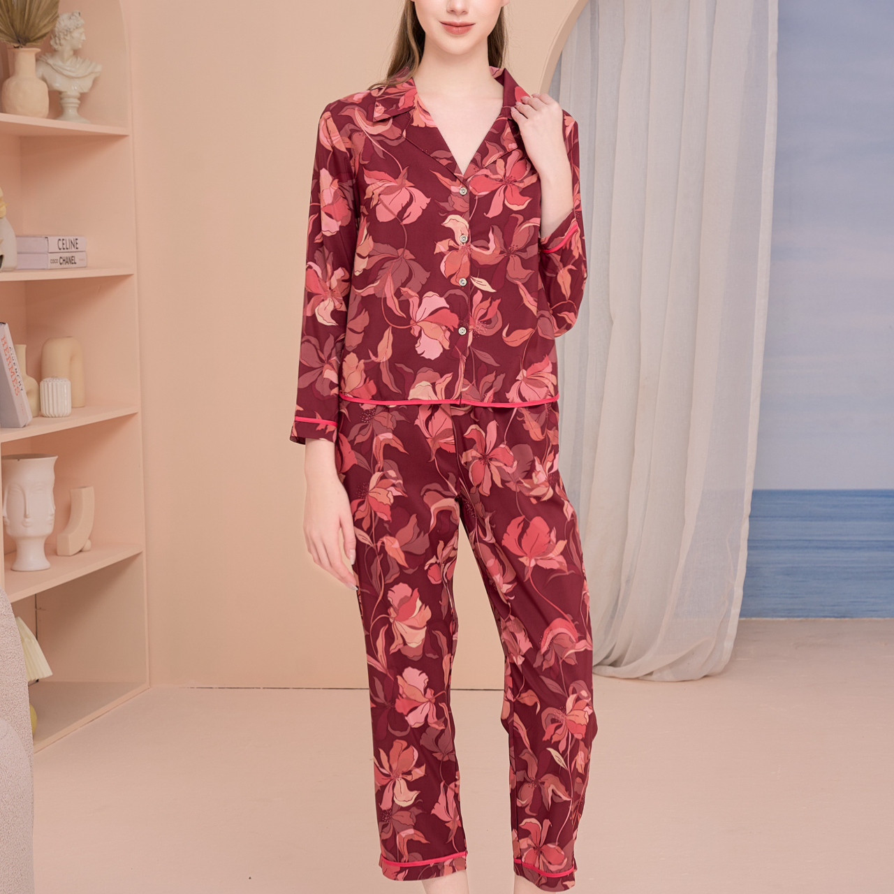 Pijama lụa satin tay dài quần dài #sleepwear #đồngủ #pijamalua
