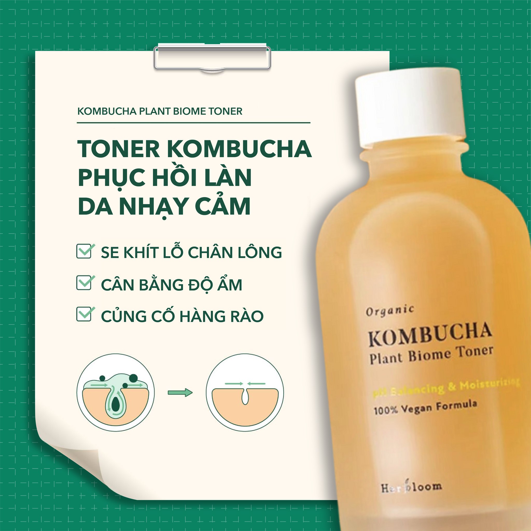 Nước Hoa Hồng Cân Bằng Da Herbloom Organic KOMBUCHA Plant Biome Toner 150ml ĐẶC ĐIỂM NỔI BẬT: - An toàn cho da nhạy cảm, không chứa 20 thành phần có hại. Sản phẩm an toàn