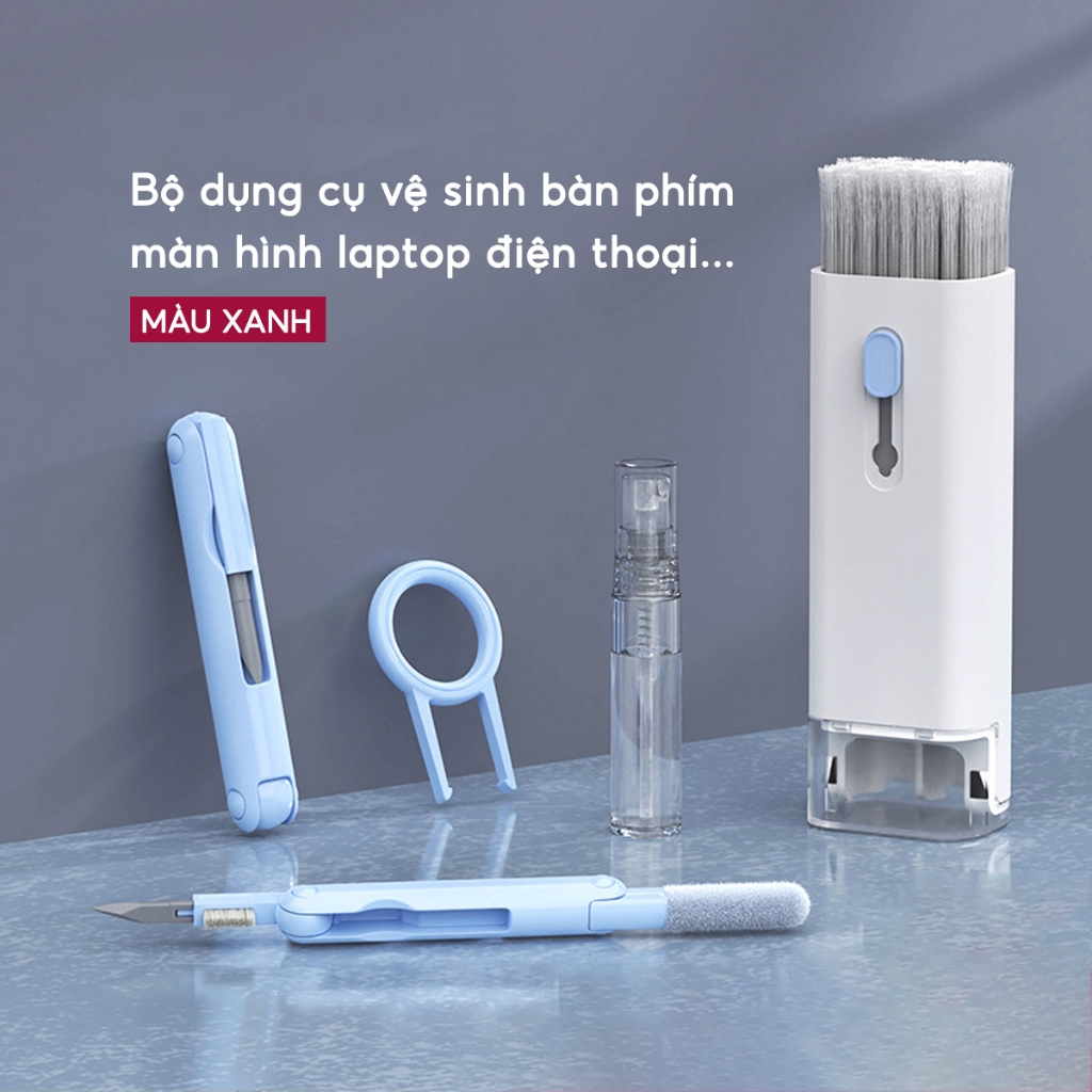- Sản phẩm bộ vệ sinh 7in1 bao gồm: + 1 Bút vệ sinh 3 trong 1 + 1 bàn chải lông mềm mịn + 1 dụng cụ tháo bàn phím + 1 bình nước dung dịch vệ sinh + 1 vải lau chuyên dụng