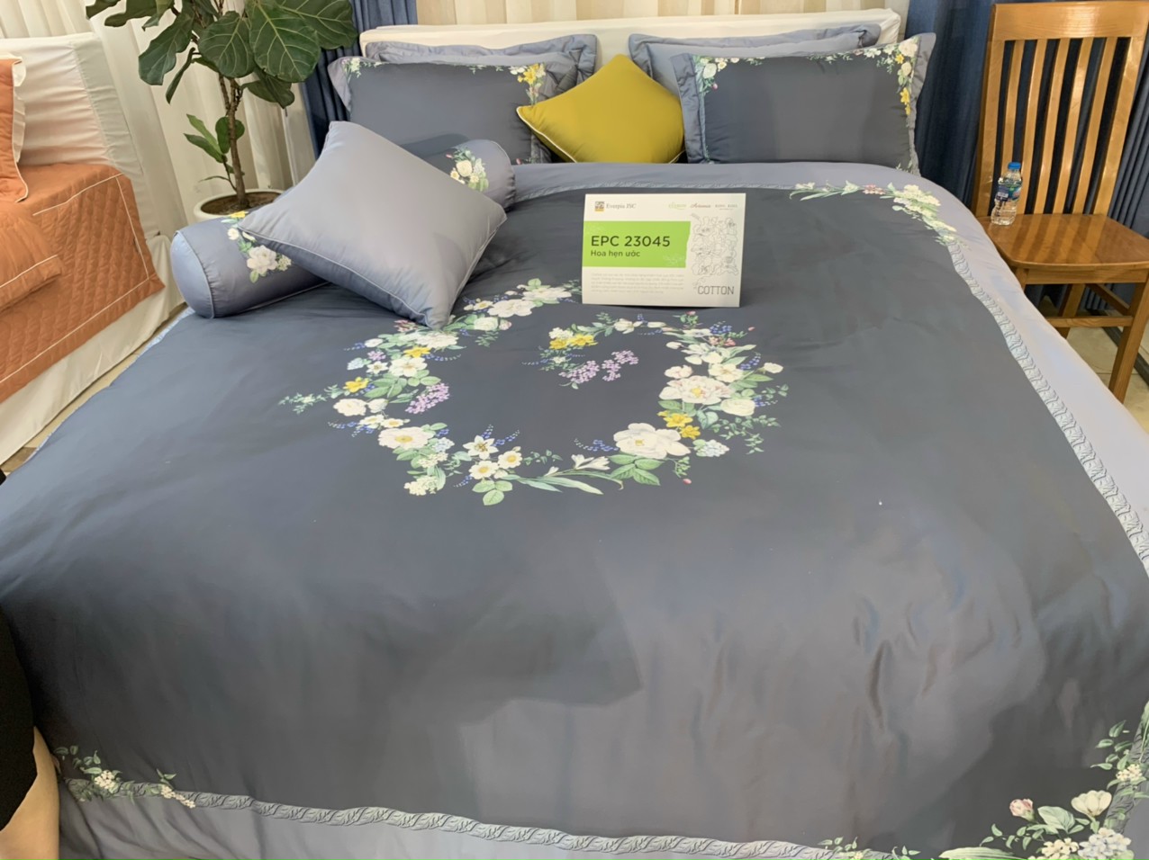 Chất liệu: Tencel Xuất xứ : Việt Nam Mô tả: Thiết kế hòa mình vào thiên nhiên đang là xu hướng của cuộc sống hiện đạị. Việc đem cây cối hoa lá vào trong phòng